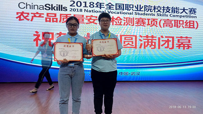 6月11~12日,全国职业院校技能大赛(高职组)“农产品质量安全检测”赛项在湖北生物科技职业学院落下帷幕。我校生物工程学院生物制药技术专业学生杨茂、赵亚玲二位同学组成的参赛团队,经过激烈角逐,以过硬的专业技能,良好的心理素质和顽强的拼博精神脱颖而出,荣获该赛项团体一等奖。指导老师曾青兰教授、王志勇教授荣获优秀指导老师奖。